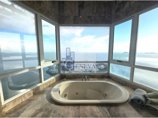 Amplio apartamento, ubicado en la mejor zona de Punta Pacífica, cuenta con doble altura en todo el apartamento y una esplendida vista al Mar